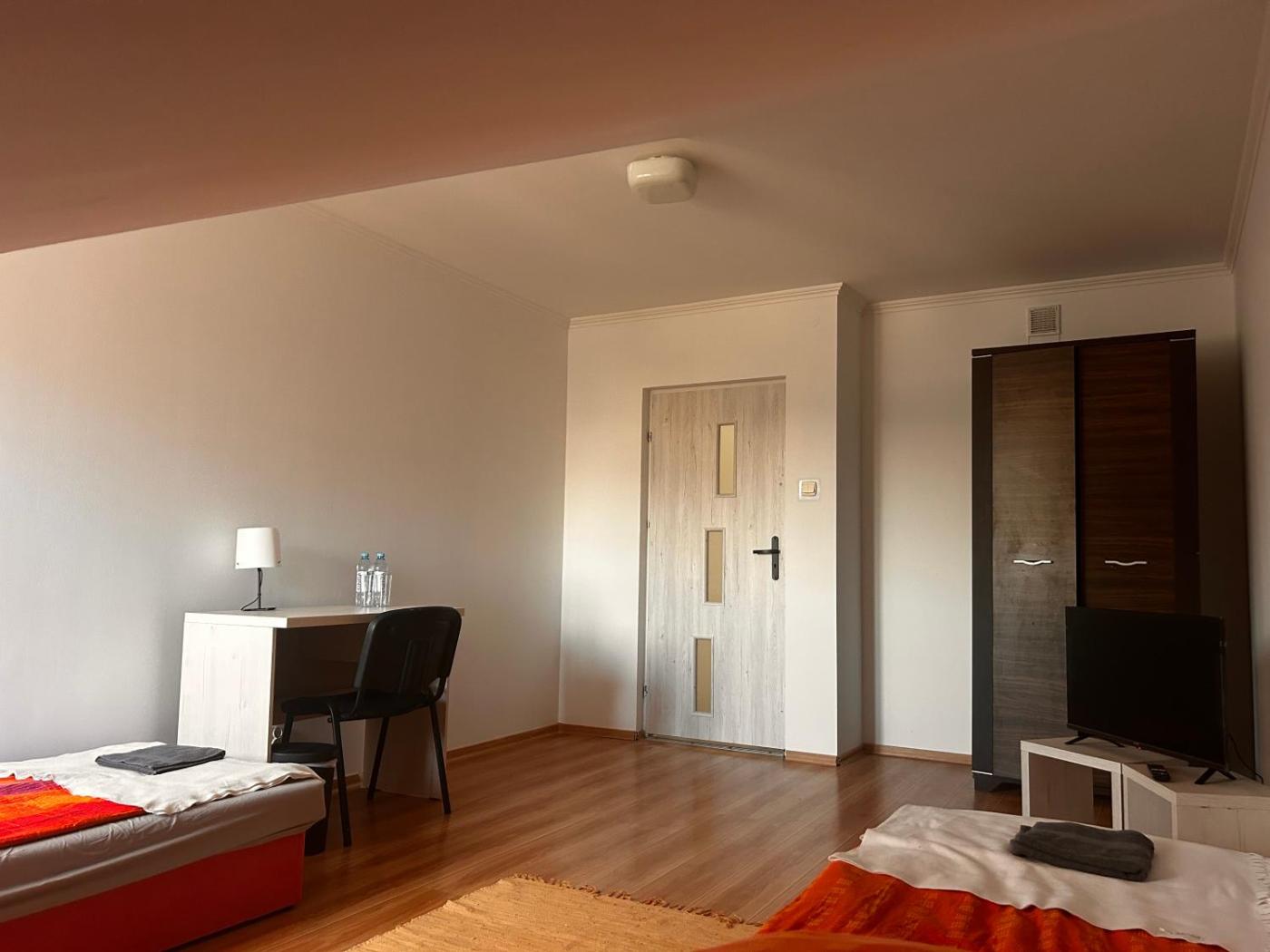 Pokój dwuosobowy. The double room offers heating, as well as a shared bathroom boasting a shower. The well-equipped kitchen has a stovetop, a refrigerator, kitchenware and a microwave. The double room features a tea and coffee maker, a dining area, a wardrobe, a flat-screen TV, as well as city views. The unit has 2 beds. Pokój Dwuosobowy - 2 osobowy. Powierzchnia pokoju ok.: 20 mkw.