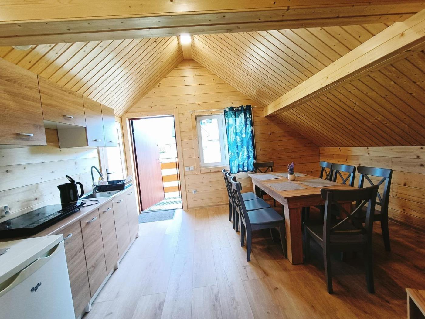 Domek. Featuring a private entrance, this chalet also consists of 2 separate bedrooms, 1 bathroom with a shower, a kitchen and a dining area. The kitchen is equipped with a stovetop, a refrigerator and kitchenware. This chalet features a wardrobe, an electric kettle, a flat-screen TV with streaming services and an outdoor dining area. The unit offers 4 beds. Domek - 4 osobowy. Powierzchnia pokoju ok.: 30 mkw. ;