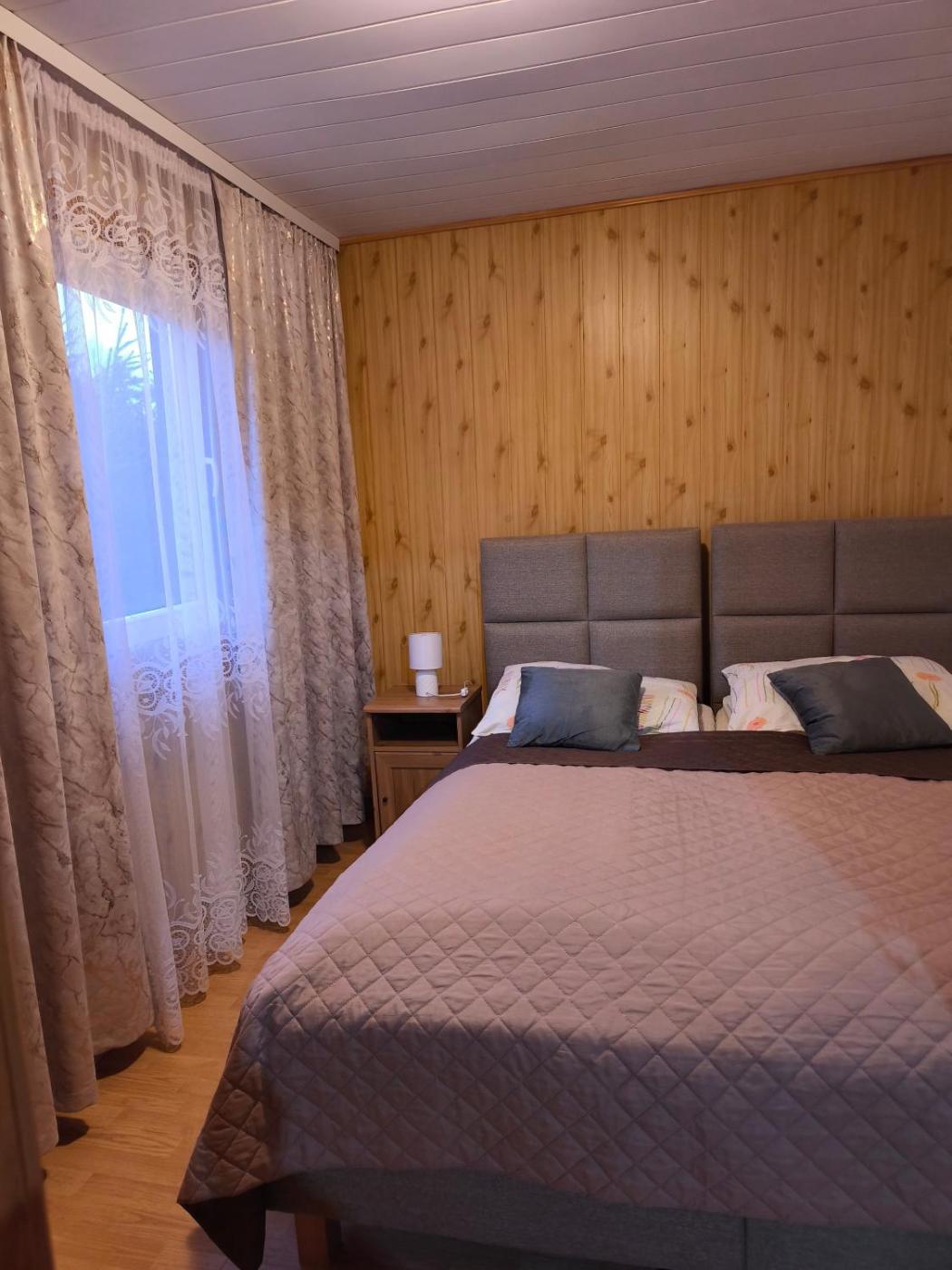 Domek z 2 sypialniami. Boasting a private entrance, this chalet also features 1 living room, 2 separate bedrooms and 1 bathroom with a shower. Guests will find a stovetop, a refrigerator, kitchenware and a tea and coffee maker in the well-fitted kitchenette. The chalet also comes with a barbecue. Featuring a terrace with garden views, this chalet also features a washing machine and a flat-screen TV. The unit has 5 beds. Domek - 6 osobowy. Powierzchnia pokoju ok.: 50 mkw. ;