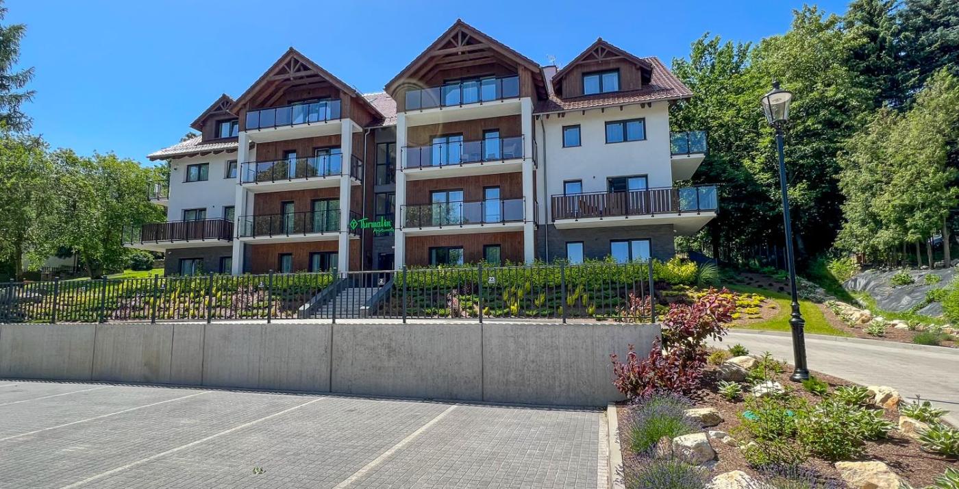 Apartament z 1 sypialnią. Apartament ten mieści salon, oddzielną sypialnię oraz łazienkę z prysznicem i suszarką do włosów. W doskonale wyposażonym aneksie kuchennym znajdują się przybory kuchenne, płyta kuchenna, lodówka i zmywarka do naczyń. Apartament oferuje pralkę oraz telewizor z płaskim ekranem. Z tarasu roztacza się widok na ogród. W tej opcji zakwaterowania zapewniono 2 łóżka. Apartament - 4 osobowy. Powierzchnia pokoju ok.: 42 mkw.