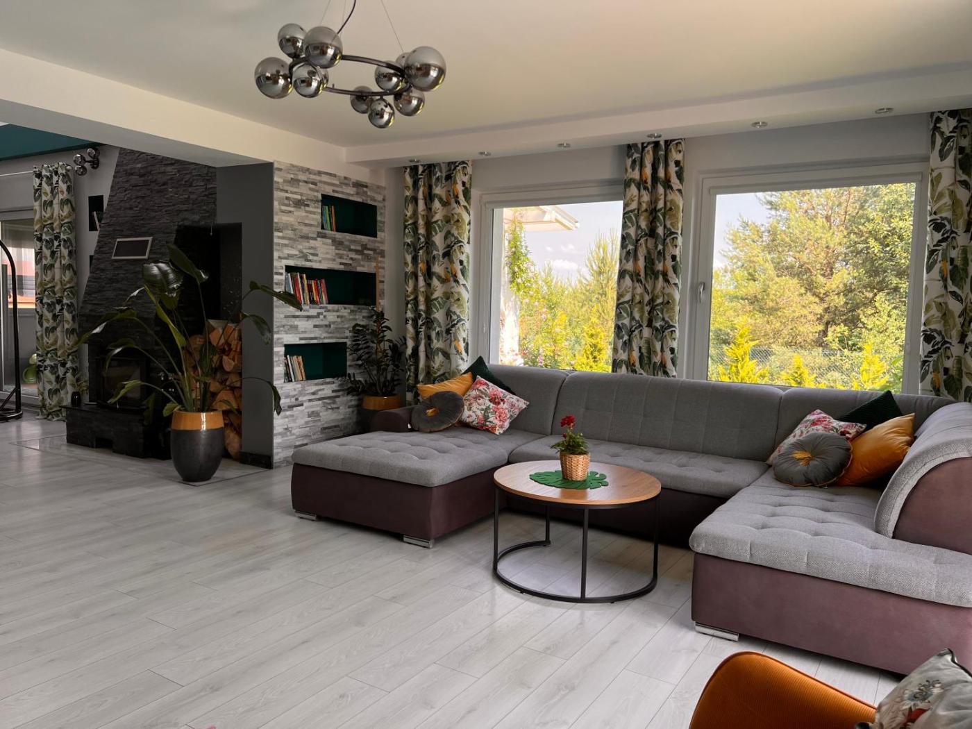 Dom wakacyjny. This holiday home boasts a pool with a view, sauna and fireplace. Featuring a private entrance, this air-conditioned holiday home comprises 1 living room, 4 separate bedrooms and 2 bathrooms with a bath and a shower. Guests will find a stovetop, a refrigerator, a dishwasher and kitchenware in the well-equipped kitchen. The holiday home also provides guests with a barbecue. The spacious holiday home provides a coffee machine, a seating area, a dining area as well as a terrace with garden views. The unit offers 10 beds. Dom wakacyjny - 17 osobowy. Powierzchnia pokoju ok.: 220 mkw.