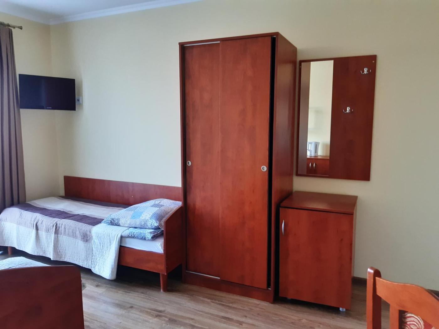 Pokój trzyosobowy. The triple room offers a tea and coffee maker, a wardrobe, as well as a private bathroom boasting a shower and a hairdryer. This triple room has a barbecue, parquet floors, a flat-screen TV and a balcony. The unit has 2 beds. Pokój Trzyosobowy - 3 osobowy. Powierzchnia pokoju ok.: 13 mkw.